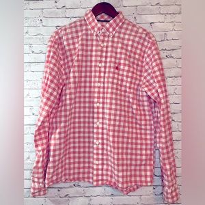Johnnie-O Pink Checked Longsleeve Polo Mens Large