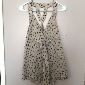 Cream tank top with strap beading