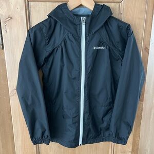 Girls Columbia Lightweight Hooded Rain jJcket, Windbreaker Black M (10-12)
