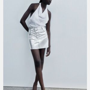 MWT Zara silver denim skirt small | Zara silver metallic mini skirt