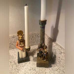 Adorable Set of Two Candlestick Holders - Egyptians
