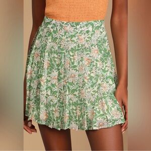 LULU’S COUNT THE PETALS GREEN FLORAL PRINT PLEATED MINI SKIRT