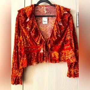 Free people Rudi floral printed ruffle cropped top. NWT Size XL.
