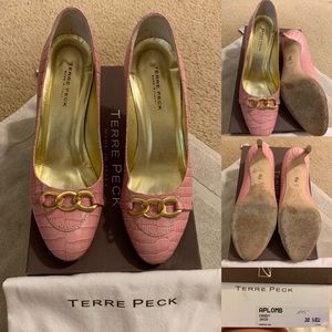 Terre Peck Aplomb candy pink, leather heels. 38.5