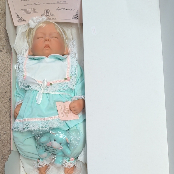 The doll arrived and was just as advertised. The original box was wrapped with paper and must have gotten wet and beaten up in shipping. So please when shipping an original box put it in another box to ship. The doll is beautiful and was as advertised her paperwork also got wet. It had fragile written all over the paper also.