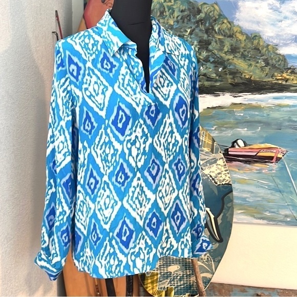 Beautiful silk blouse, just as described. Ty for the lovely packaging, personal note and Spring gift! Highly recommend this seller!