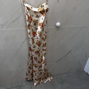 Satin floral dress. Asymmetrical detailing. Never worn. Boutique purchase.
