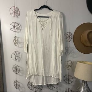 REWIND | LACE HIGH LO CREAM SCOOP BACK SHORT SLEEVE SHIFT MINI DRESS SIZE LARGE