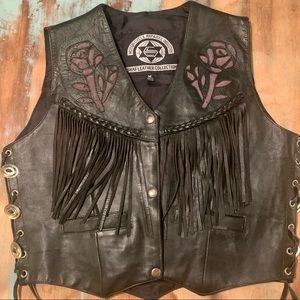 Women’s leather rose fringe biker vest