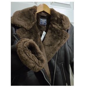 Abercrombie & Fitch Black and Brown Leather Jacket