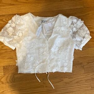 Petite Studio Arissa Top (White Crop Short Sleeve Eyelet Jacket) - XS