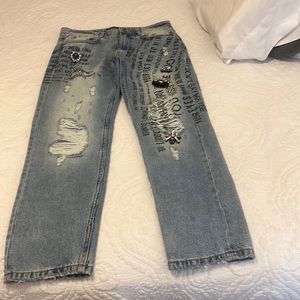 Mid rise boyfriend jeans.
