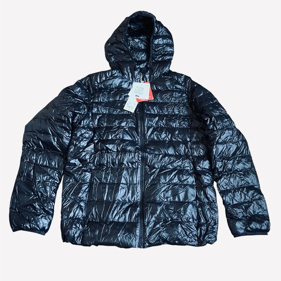 Quick delivery. This lightweight hooded down jacket is in new, excellent condition. So glad that it has zippered pockets. Love it!