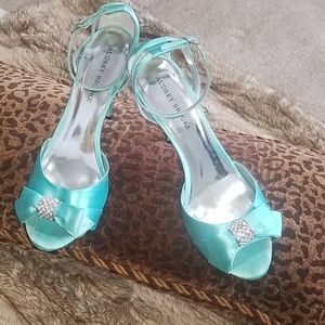 Seafoam Green faux suede platform pumps