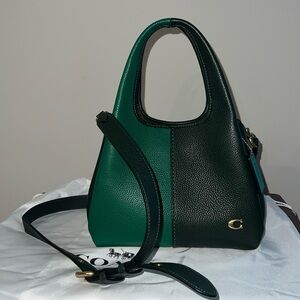 COACH Lana 23 Polished Pebble Leather Medium Shoulder Bag Beige Colorblock NWT