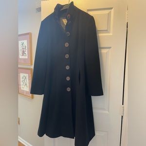 Kenneth Cole Double Breasted Black Pea Jacket, with Gold Buttons & Zippers
