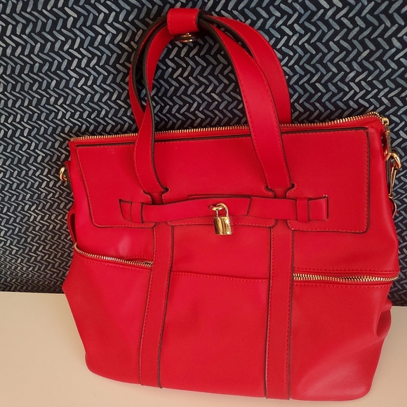 This is BEAUTIFUL. I've been looking for a bright red tote purse that fits my tablet. This looks brand new. I LOVE IT.