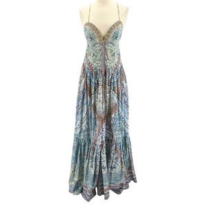 GORGEOUS CAMILLA BLUE PRINT BOHO MAXI DRESS WITH EMBELLISHMENTS