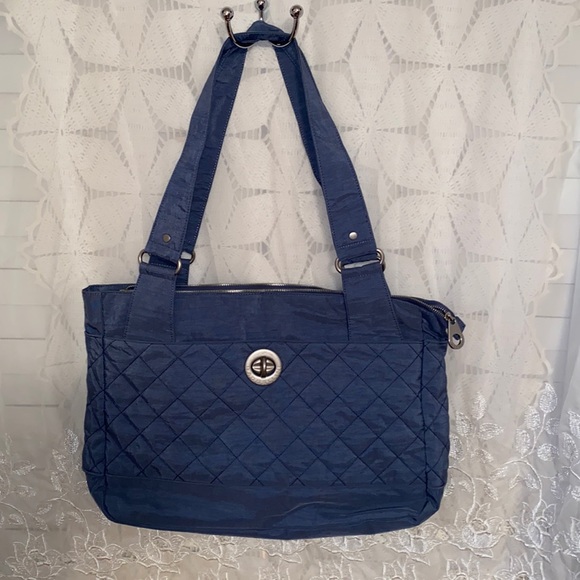 Nice bag in great condition at a great price. It's huge and will fit a ton of stuff. I love Baggalini. Super fast shipping and well packaged. A+ seller. Thank you!