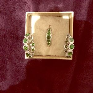 Chrome Diopside Earrings And Ring with Diamonds