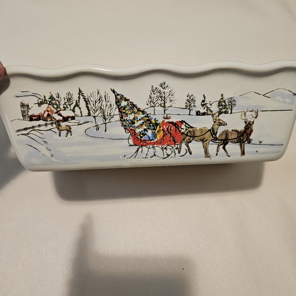 My loaf pan arrived in great condition. What a charming item. I absolutely love it and the pot holder was nice as well. Thank you for the care packing and quick delivery. I recommend this seller.