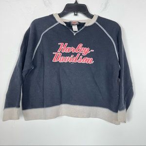 VTG Harley Davidson Sweater Crop Knit Top Shirt Crew Neck Logo Spellout Black