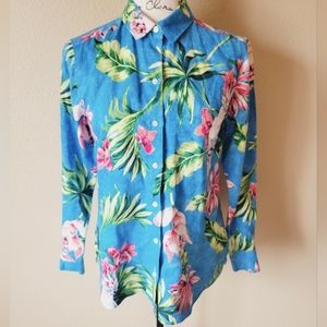 Soft Surroundings White Blue Floral Long Slevee Top style # 25331 XL