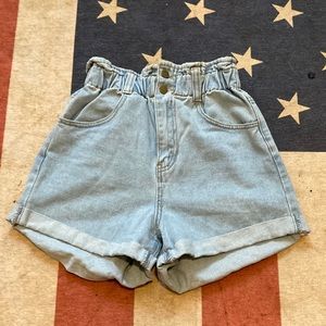 Light Wash Double-button Jean Shorts