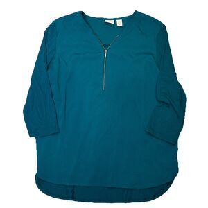Chico's 0 Top Size 4 Small SHEER 3/4 Sleeves Peacock Feathers Colorful Blouse