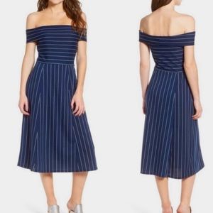Wayf navy and white off the shoulder dress