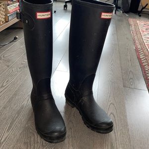 Matte black Hunter boots. Gently worn- broken buckle on 1 boot