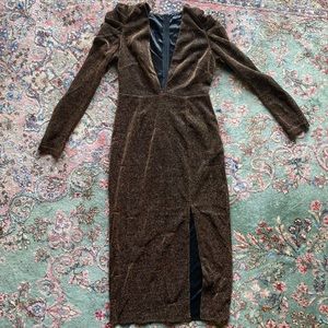 Nasty Gal Metallic Gold Long Sleeve Midi Dress