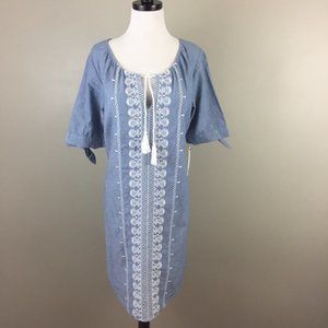 ** Sonoma Embroidered Chambray Shift Dress Boho