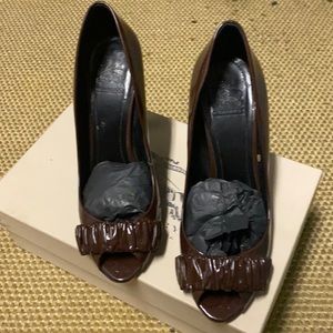 Maroon Burberry peep toe shoe size 38