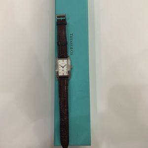 Tiffany and co Swiss made stainless steel alligator strap rectangle watch