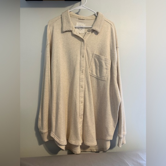 FAST SHIPPER, I KNEW IF I WAITED, I WOULD FIND THIS SHIRT IN BEIGE, LOVELY, LOVE THE EXAGGERATED KNIT COLLAR AND CUFFS, THANKS SO MUCH FOR HAVING THIS. GREAT CUSTOMER SERVICE, THANKS ⛄️