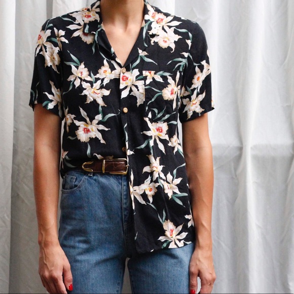 Citron Tops - Citron Santa Monica Linen Button Up Short Sleeve Shirt Women's Large