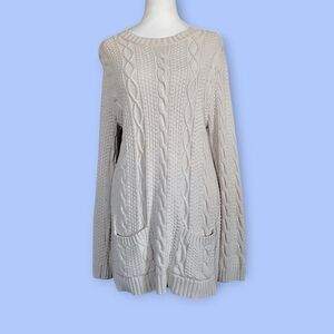 Jeanne Pierre Cable Knit Pocketed Tunic Sweater