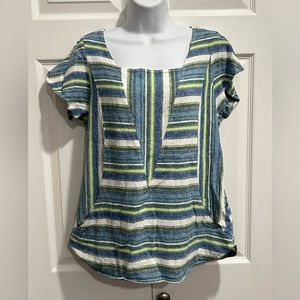 For Cynthia Linen and Cotton Short Sleeve Striped Shirt Size XL
