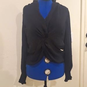 Orvis Women’s Blue White Ruffled Trim Button Up Blouse Size 16