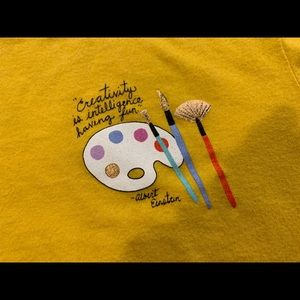 Never-worn bright yellow ringer T w/ art graphics!