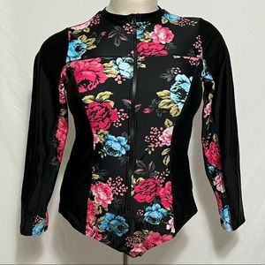 Torrid Swimsuit Swim Rash Guard Front Zip Wireless Size 4 Floral