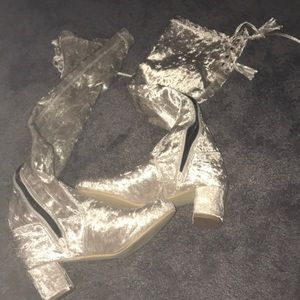 Crushed White Velvet Lace Up Over The Knee Boots