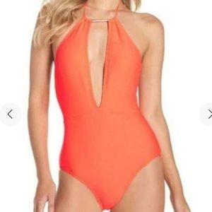 Ted Baker Pikaa Halter Deep-V One Piece Coral