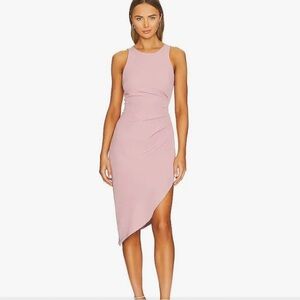 BCBGeneration Ruched Asymmetrical Midi Dress in Blush, Size 0