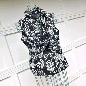 Michael Kors Top Blouse Zipper 3/4 Long Sleeves Collar Pockets Logo Hardware M