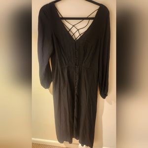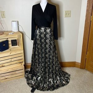 LuLaRoe DeAnne Black And Gold Chevron Print Pleated Long Dress Large