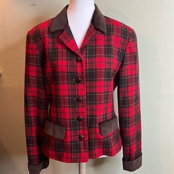 Just received my beautiful LizSport red and brown plaid wool blazer with velvet collar and cuffs, in like new condition! Vintage, but looks like it was never worn. I just love it! What a lovely Fall jacket! Can't wait to wear it! Love it! Thanks!