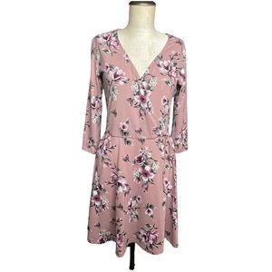 A. BYER MAUVE FLORAL LONG SLEEVE FAUX WRAP DRESS SIZE LARGE