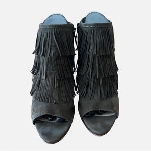 Vince Camuto Jason Fringe Open Toe Wedge Bootie. Size 8. Olive Green.